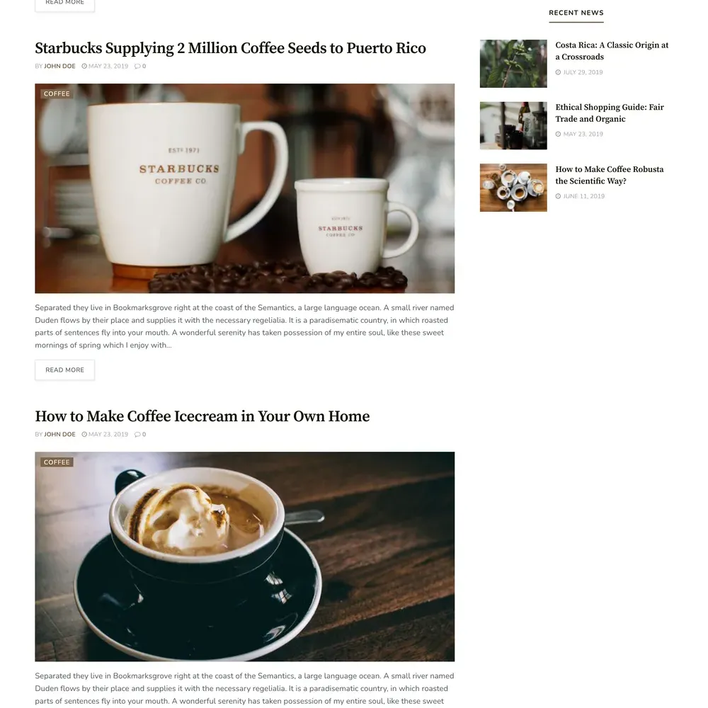 Coffee News Website Design with Free VPS Web Hosting