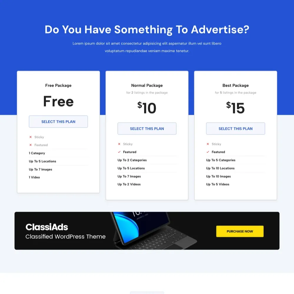 Ready Made Classified Website Design with Free Web Hosting